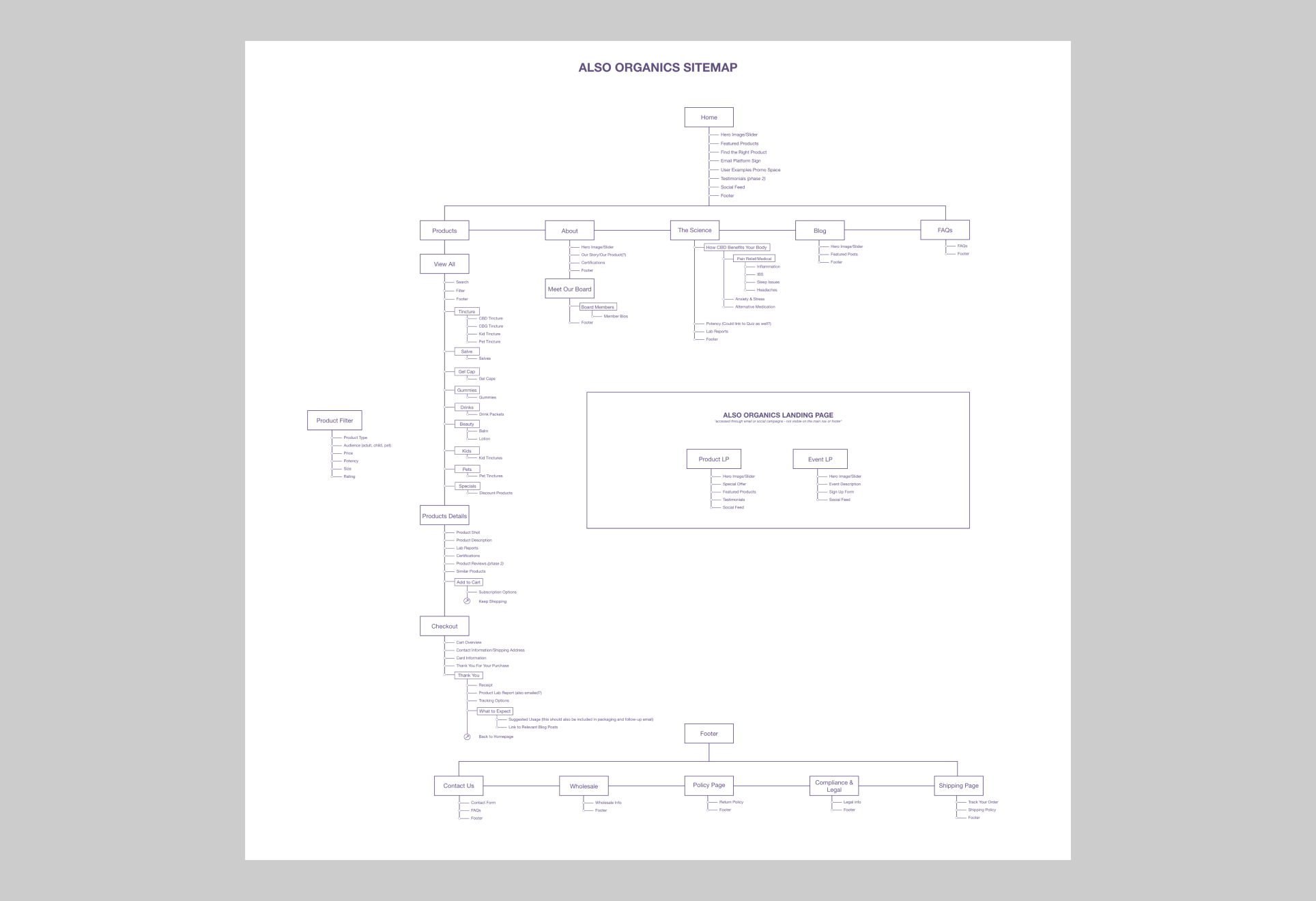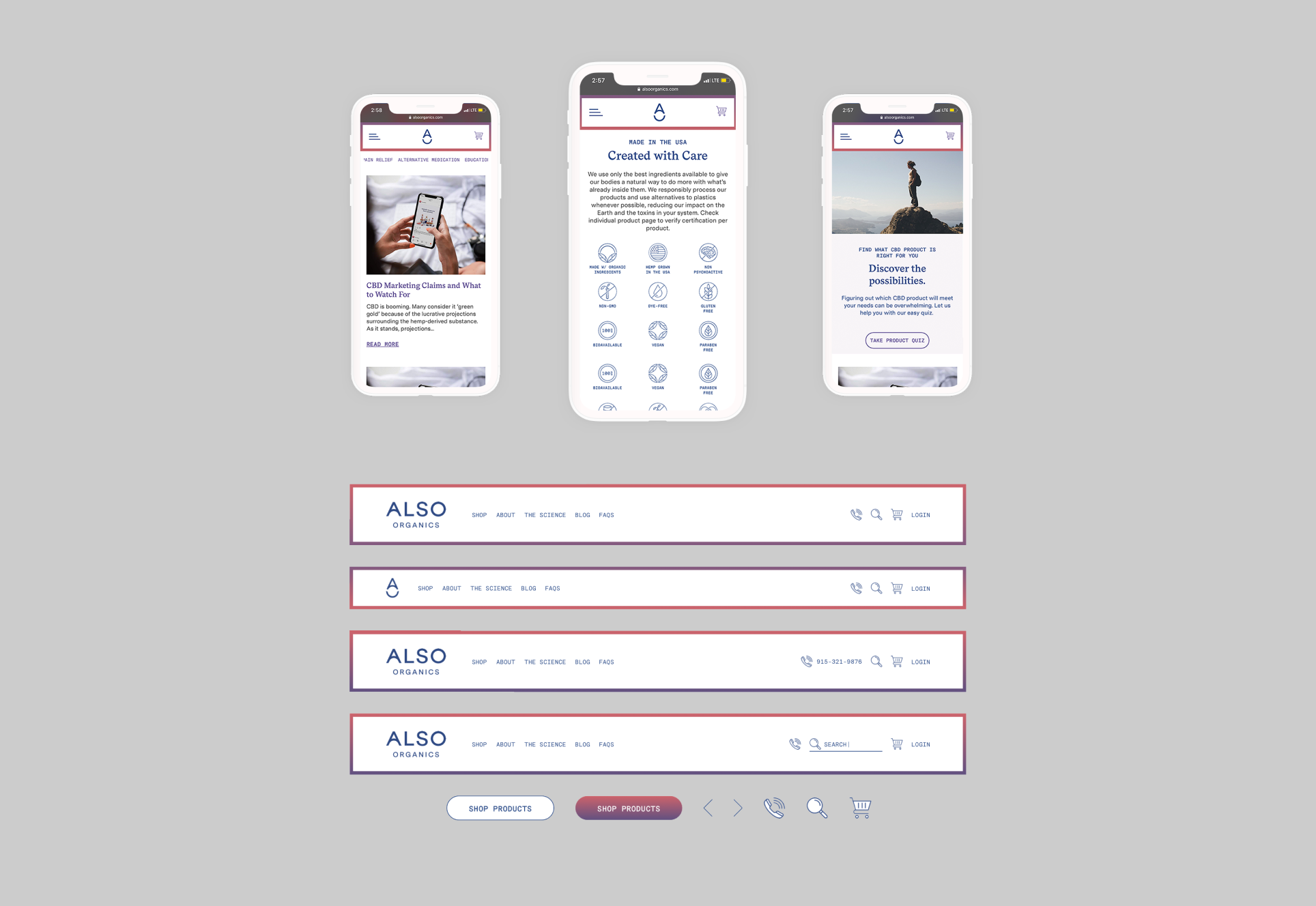 The site launched as Also Organics' primary e-commerce presence, giving the brand a digital storefront that matched its product quality and stood apart visually from category competitors. The quiz and educational content layers addressed the trust and information barriers that were holding back purchase decisions from older and first-time CBD buyers — the audience the industry was largely leaving underserved.